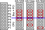 -6- Wie teste ich die neue Einstellung? Ganz einfach: Rechner über die Tastatur einschalten. Wenn sich nach dem Startton nichts mehr regt, dann sind Prozessor und/oder Systembus (Motherboard) mit der Einstellung überfordert und verweigern ihren Dienst. In diesem Fall einfach wieder eine Stufe zurckschalten. -6- How do I test the new settings? Simply turn on your machine. If it doesn't move after the startup tune then the processor and/or system bus (motherboard) are really overclocked. Simply switch back to a lower setting. Ein Hinweis zum Cache: Durch Übertaktung der CPU läuft auch das Backside-Cache schneller. Da die Cache-Chips ebenfalls eine maximale, individuell verschiedene Takt-Obergrenze besitzen, kann das Cache zum limitierenden Faktor werden, schon bevor CPU und Motherboard ihre Grenzen erreichen. Hier mag es hilfreich sein, das CPU : Cache Verhältnis von den standardmässigen 2:1 auf einen kleineren Teiler zu setzen (z.B. 3:1 - Hersteller von G3-Upgrades stellen alle ein entsprechendes Utility auf ihren Webseiten bereit). Zumindest gelegentliche Abstürze könnten so u. U. vermieden werden, hängt sich der Rechner aber bereits vor dem Laden der Systemerweiterungen auf, hilft auch das nichts.