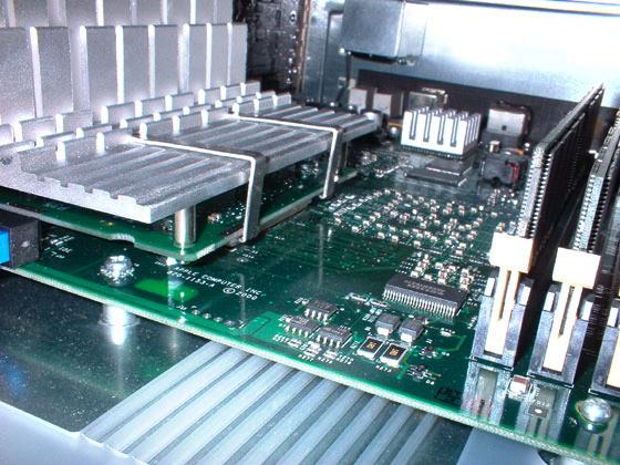 Then, determine exactly which processor you've got. Do so by removing the heat sink (just pull the two metal strips that hold it onto the processor card) and write down the numbers that are printed on the CPU chip itself. In some cases you'll find it's a downclocked CPU (e.g. 450 running at 400 MHz). Models made by Motorola are listed in this PDF: |